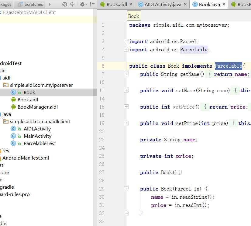 把 java 文件放到 java 包下去:把 Book.java 放到 java 包里任意一个包下,保持其包名不变,与 Book.aidl 一致。只要它的包名不变,Book.aidl 就能找到 Book.java ,而只要 Book.java 在 java 包下,那么系统也是能找到它的。