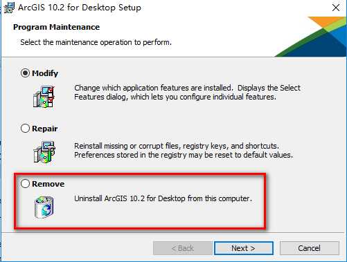 选择Remove,然后根据提示进行操作,即可完成ArcGIS 10.2 for Destop的卸载操作,之后卸载其他ArcGIS软件即可。