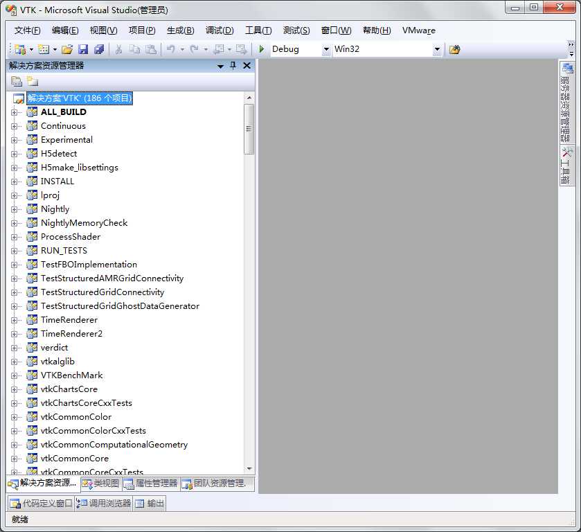 打开生成的VS工程(双击“VTK.sln”文件),工程的大致结构如下: