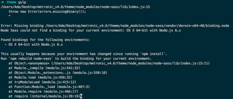打开终端并进入到 Metronic 的 theme 根目录。请查看该目录下 gulpfile.js 文件是否存在。