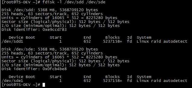 使用同样方法对/dev/sde 进行分区操作,分区结果如下: