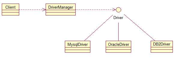 这样,就通过对Bridge类的调用,实现了对接口Sourceable的实现类SourceSub1和SourceSub2的调用。接下来我再画个图,大家就应该明白了,因为这个图是我们JDBC连接的原理,有数据库学习基础的,一结合就都懂了。