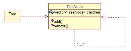 public class TreeNode { private String name; private TreeNode parent; private Vector<TreeNode> children = new Vector<TreeNode>(); public TreeNode(String name){ this.name = name; } public String getName() { return name; } public void setName(String name) { this.name = name; } public TreeNode getParent() { return parent; } public void setParent(TreeNode parent) { this.parent = parent; } //添加孩子节点 public void add(TreeNode node){ children.add(node); } //删除孩子节点 public void remove(TreeNode node){ children.remove(node); } //取得孩子节点 public Enumeration<TreeNode> getChildren(){ return children.elements(); } } public class Tree { TreeNode root = null; public Tree(String name) { root = new TreeNode(name); } public static void main(String[] args) { Tree tree = new Tree("A"); TreeNode nodeB = new TreeNode("B"); TreeNode nodeC = new TreeNode("C"); nodeB.add(nodeC); tree.root.add(nodeB); System.out.println("build the tree finished!"); } }