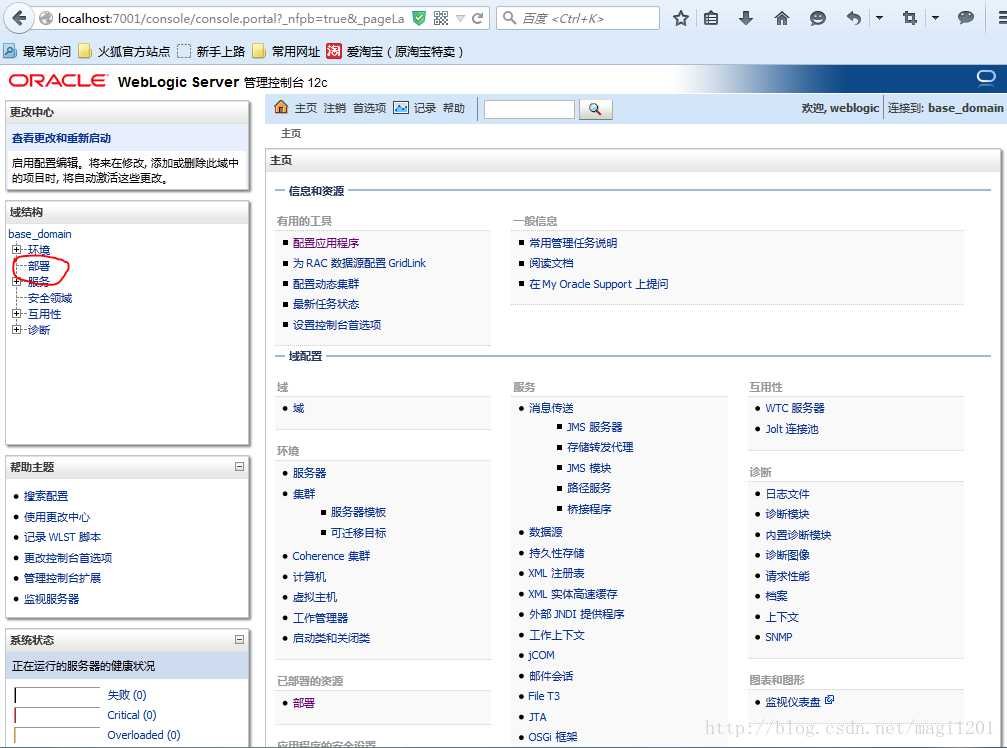 1 启动weblogic服务,登录到weblogic控制台页面,输入用户名和密码,登录到控制台里面