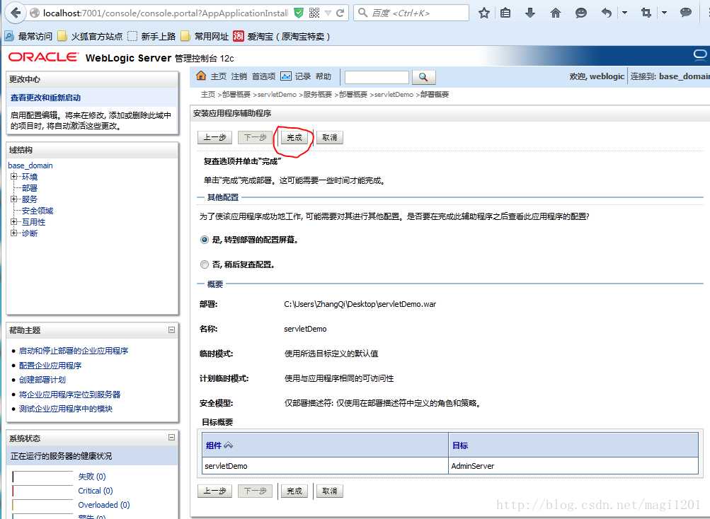 这个一般的正式生产环境或测试环境可以采用这种方式。这时需要将weblogic的运行模式修改为生产模式,将部署包放到统一的地方进行管理,安装,更新,删除部署直接在控制台进行,方便监测。