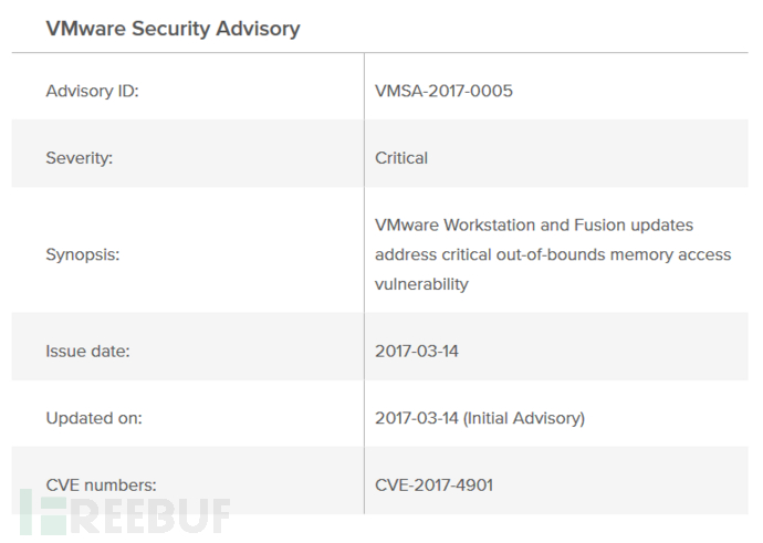 这款工具利用的正是Pwn2Own大赛中的一个逃逸漏洞,编号CVE-2017-4901。今年3月14日,VMware官方已经进行了更新。