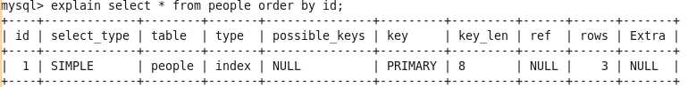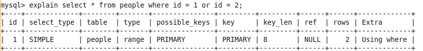 Query-19 mysql> explain select * from people2 where id = 2 or id is null;
