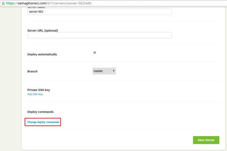 在随后的一页中,我们需要关注标题为 Deploy commands 的最后一栏。点击 Change deploy commands 链接来开启命令编辑。
