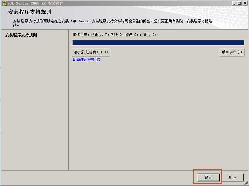 2.因为之前已经成功安装,所以安装规则不存在问题,如遇问题查看明细具体解决,安装规则检测成功后,点击确定