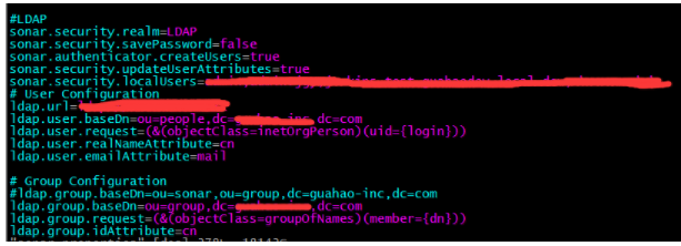 2.配置ladp,vi conf/sonar.properties,增加ldap相关的配置参数