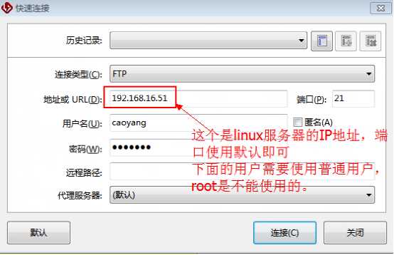 输入linux服务器的IP地址(连接之前确保vsftpd服务已经启动,同时确保防火墙和selinux的关闭)