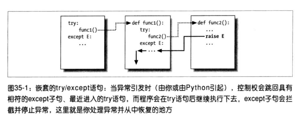 以下是当异常发生的时候try/except和try/finally对于异常的处理: