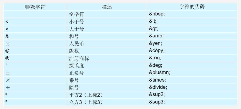 有的时候我们需要显示某些特殊字符,但是这些字符却被HTML语法所使用,比如尖括号,所以可以用以下字符的代码代替: