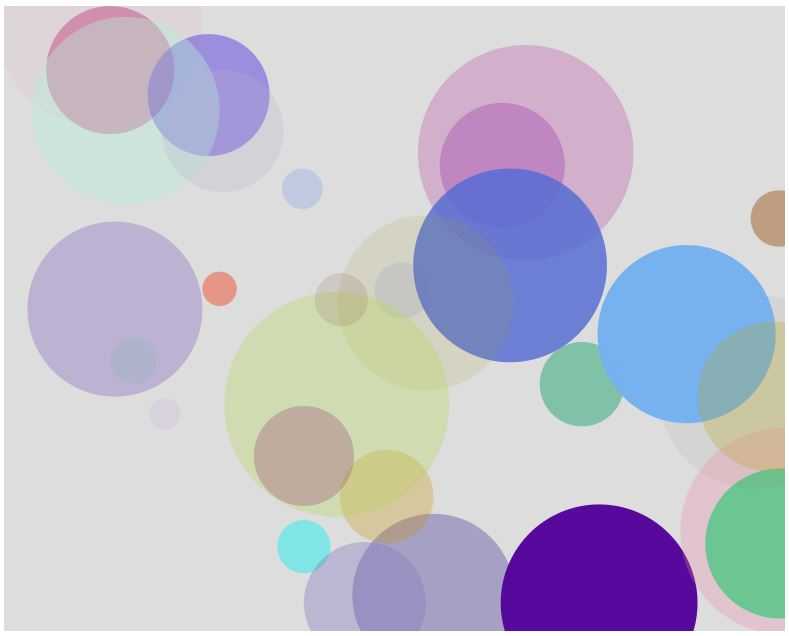在学习Canvas绘图技术时,做的是随机验证码的例子,在学习SVG绘图技术时,同样也有一个随机绘制的例子——动态随机绘制圆形。这个练习,即综合了多种SVG技术的知识点,又很具有艺术感,随机生成的任意一张图片都具有艺术之美。