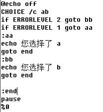 这种用法现在很少用了,因为它需要使用到CHOICE命令,这个命令现在被set /p代替了,它是判断CHOICE命令选择的选项的,CHOICE命令是一个提供选项功能的命令。