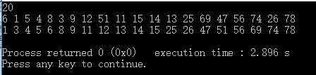 #include<iostream> using namespace std; void print(int A[], int x, int y)//输出A[x,y] { for(int i = x; i <= y; i ++) { cout << A[i] << ‘ ‘; } cout << endl; } void f(int A[], int x, int y)//把[x,y]划分成左右2个序列(不包括mid) { if(x >= y) { return ; } int i = x, j = y, flag = 0, mid;//flag是0代表基准数下标是i,1代表基准数下标是j while(i != j) { if(A[i] > A[j]) { swap(A[i], A[j]); flag = 1 - flag; if(flag)//基准数下标是j,i右移 { i ++; } else//基准数下标是i,j左移 { j --; } } else//不交换 { if(flag) { i ++; } else { j --; } } } mid = i;//i = j f(A, x, mid - 1); f(A, mid + 1, y); } int main() { int n, A[1000]; cin >> n; for(int i = 0 ; i < n ; i ++) { cin >> A[i]; } f(A, 0, n-1); print(A, 0, n-1); return 0; }