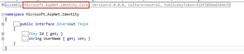 以User信息为例,Microsoft.AspNet.Identity.Core类库中提供了User的核心接口:
