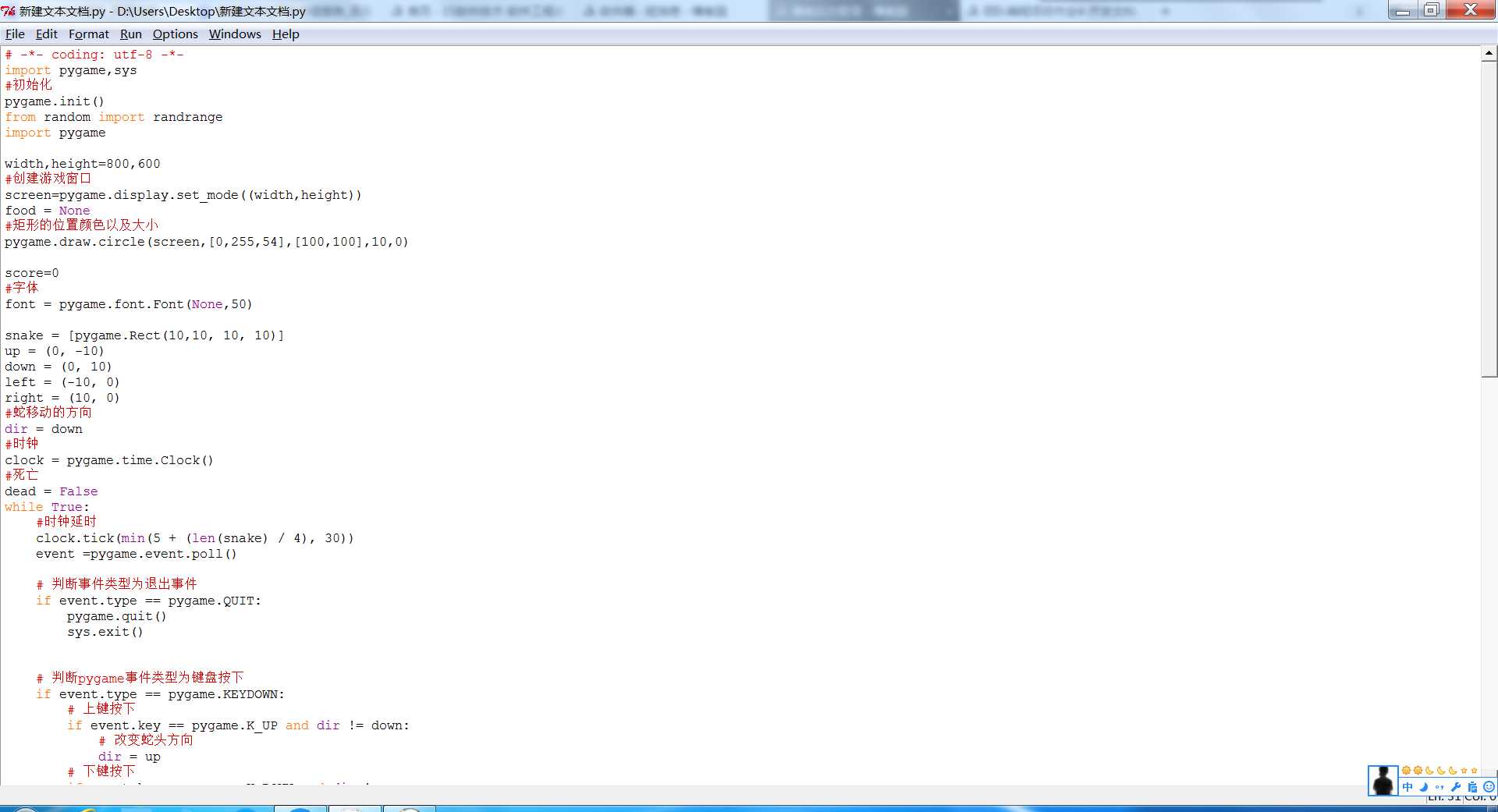 2.未设置食物随机生成的位置与蛇身体冲突重新生成