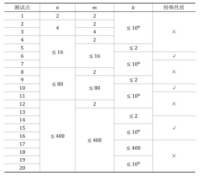 子任务会给出部分测试数据的特点。如果你在解决题目中遇到了困难,可以尝试只解 决一部分测试数据。 每个测试点的数据规模及特点如下表: