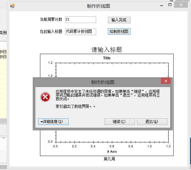 输入数据,点击绘制折线图按钮,报错,并且没有生成数据,未能保存成功。截图如下: