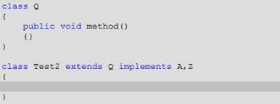 对class Test2 extends Q implements A, Z这句话进行解析:Test2这个类继承Q就意味着,给Test2给它找了一个爹,找了一个组织。因为它一继承Q,它就具备了里面的所有内容,它能做继承,就是说它是Q的一种。现在问题来了,以及继承了,干嘛还要多实现呢?因为,Q中的功能已经不能满足Test2的需求了,它还想要更多的功能,这时又不能通过继承来实现,只能通过实现接口的形式来扩展Test2里面的功能。