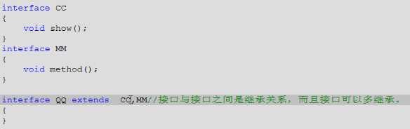 类与类之间是继承关系,类与接口之间是实现关系,而且可以多实现。
