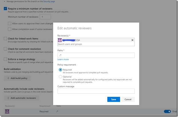 QA分支只有QA组的同事有pull request的审核权限,如下图这样的配置: