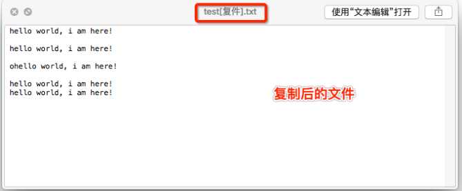 #1.获取用户要复制的文件名 file_name = input("请输入文件名:") #2. 打开原文件 f1 = open(file_name,"r") #3.打开新文件 #获取文件名 字符串操作 position = file_name.rfind(".") new_file_name = file_name[0:position] + "[cp]" + file_name[position:] f2 = open(new_file_name,"w") #4.读取原文件的内容 result = f1.read() #5。写到新文件中 f2.write(result) #6.关闭文件 f1.close() f2.close()
