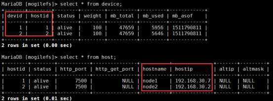 (2)查询信息,检查主机是否加入到 MogileFS 的系统中