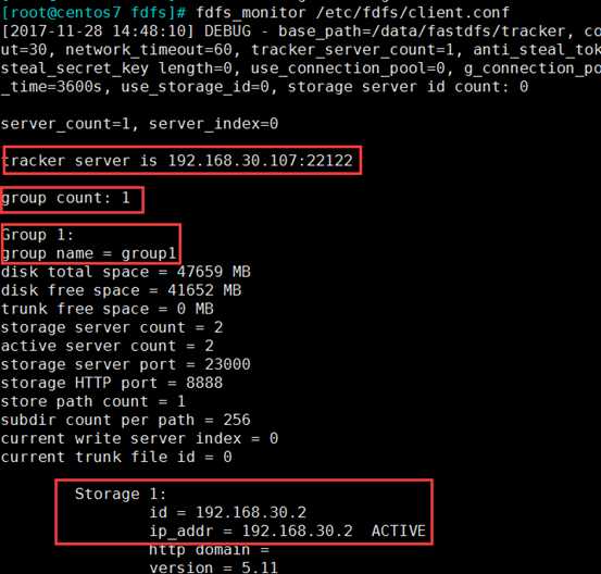 base_path=/data/fastdfs/storage #base源路径 store_path0=/data/fastdfs/storage #实际存储目录 tracker_server=192.168.30.107:22122 #指定tracker