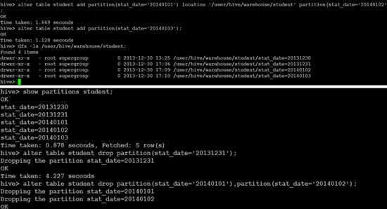 alter table student_p add partition(part=‘a‘) partition(part=‘b‘); |