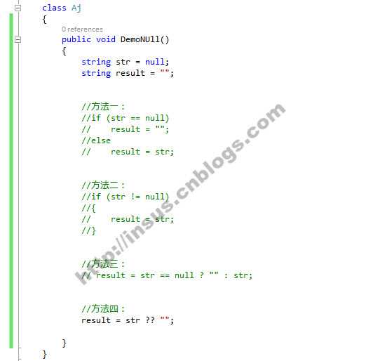class Aj { public void DemoNUll() { string str = null; string result = ""; } }