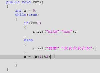 那么真正出现多线程安全问题在哪儿呢?刚才是因为r调用了name和sex,然后在赋值时,r.name=mike, sex=nan还没赋值结束,就直接被取走了导致的。而现在,name和sex赋值在哪儿呢?在set()方法中呢,