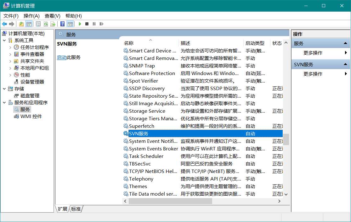 服务创建后可在服务管理器中查看(也可用“sc query SVN-Service”命令):