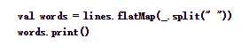 下面示例代码的作用是,在接收到的一行消息lines后,将lines根据空格进行分割,分割成若干个单词
