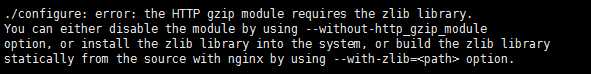 1 yum -y install zlib zlib-devel 2 ./configure --prefix=/usr/local/nginx
