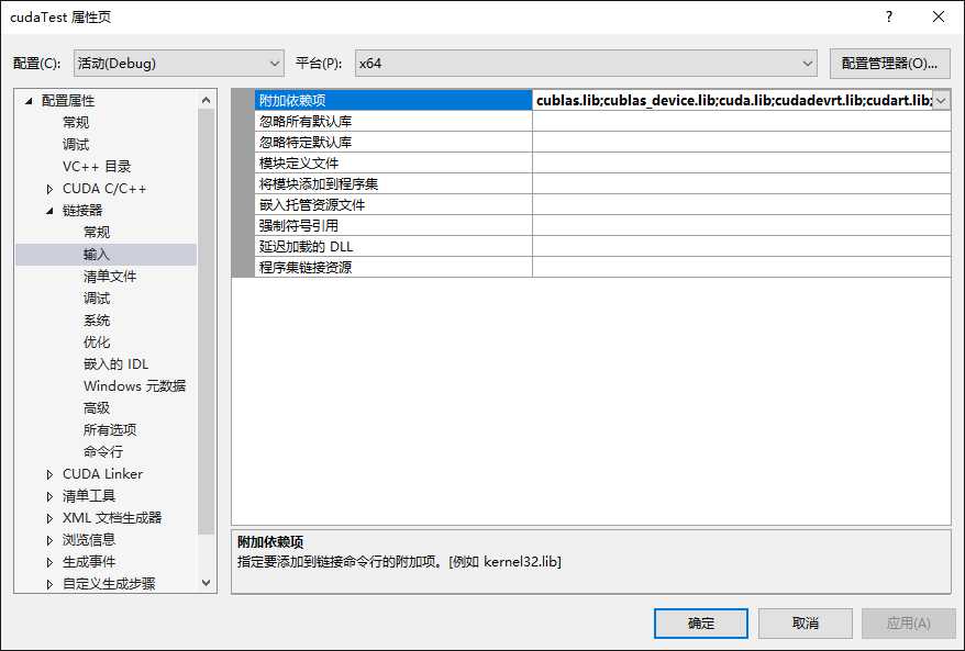 - 注意:kernel32.lib;user32.lib;gdi32.lib;winspool.lib;comdlg32.lib;advapi32.lib;shell32.lib;ole32.lib;oleaut32.lib;uuid.lib;odbc32.lib;odbccp32.lib;%(AdditionalDependencies)