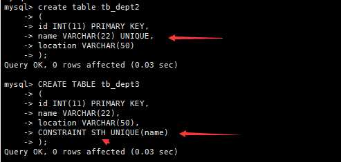 - 使用唯一性约束 要求该列唯一,允许为空,但只能出现一个空值,可以确保一列或几列不出险重复值。 语法 字段名 数据类型 UNIQUE