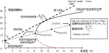 资本市场线是通过无风险资产报酬率,向风险资产有效边界所做的切线(即同时持有无风险资产和风险资产)