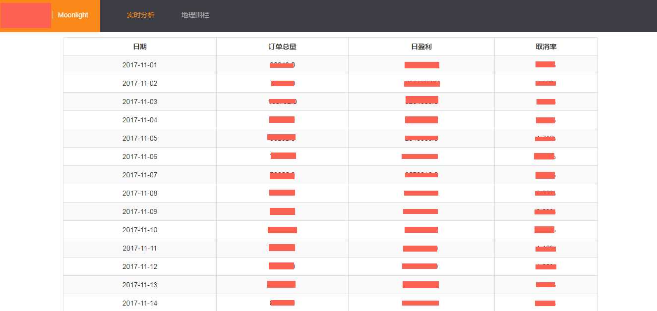 42 //当点击弹窗的保存按钮时,则会将此次圈选信息保存起来,并存储在地理围栏中,方便后续查询,然后自动跳转到图表展示页面,图表展示页面主要是对订单量、日盈里和取消率的数据的具体展示