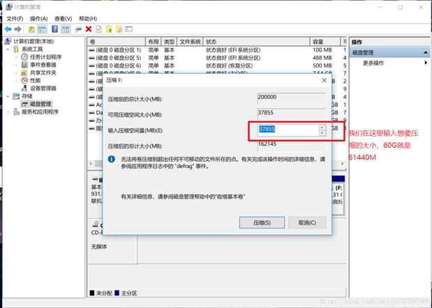 压缩完以后我们可以看到有个空余空间,这时候我们不要给它分配盘符,默认这样就行了。