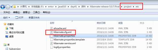把hibernate/project/etc目录下的hibernate.cfg.xml拷贝项目的src目录下。