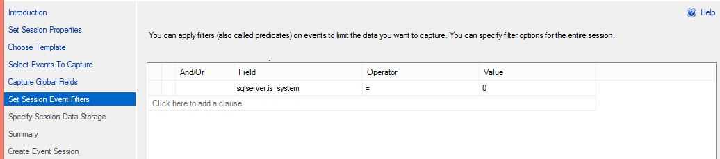 选择Event发生时其他信息,这些信息一般跟Session相关,例如Database_id 和 Database_id 就是Event发生的database 信息。一般会将sql_text也选中,便于查看触发Event的SQL语句。