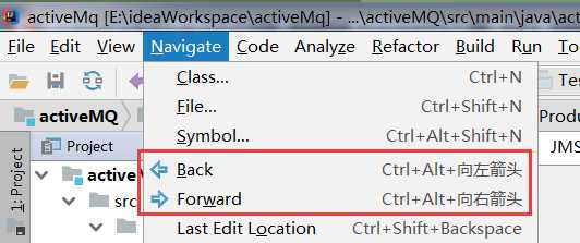 2、Previous Project Window:跳转到前一个项目【 ctrl+alt+( 】