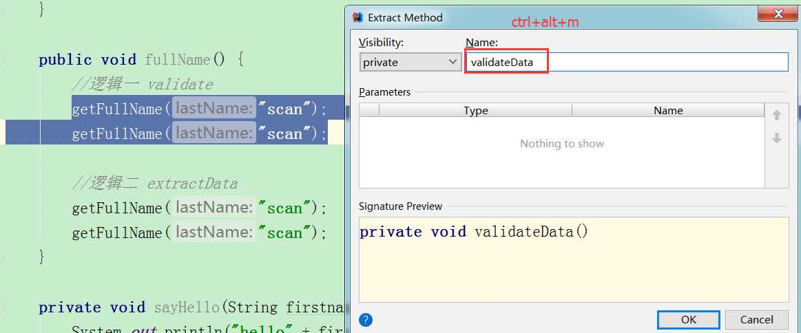 Refactor-》Extract-》Method 【ctrl+alt+m】