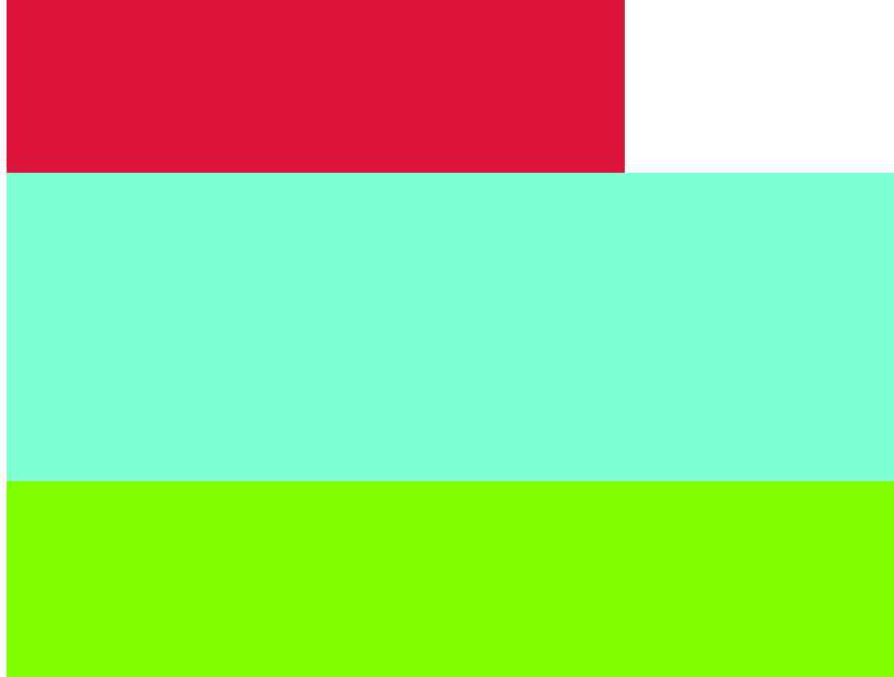 #box2 { height: 5em; width: 24em; background-color: aquamarine; } #box3 { width: 40em; height: 7em; background-color: chartreuse; }