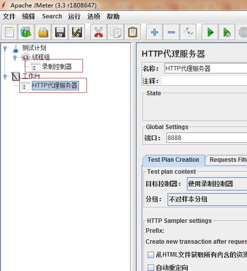 工作台 右键 非测试元件 >HTTP代理服务器
