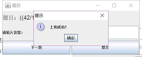 1 JPanel panel2 = new JPanel(); 2 JTextField text = new JTextField(10); 3 panel2.setLayout(new GridLayout(3, 2, 5, 5)); 4 label.setText(addProblem()); 5 panel2.add(label); 6 panel2.add(new JLabel("/*为了美观*/")); 7 panel2.add(new JLabel("请输入答案:")); 8 panel2.add(text); 9 panel2.add(jbnext); 10 panel2.add(jbsubmit);