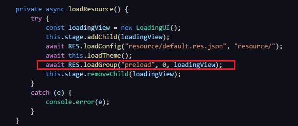 原来的RES资源管理类,loadGroup也被替换成了Promise的用法。其他如getResAsync、loadConfig也被替换成了Promise的用法。