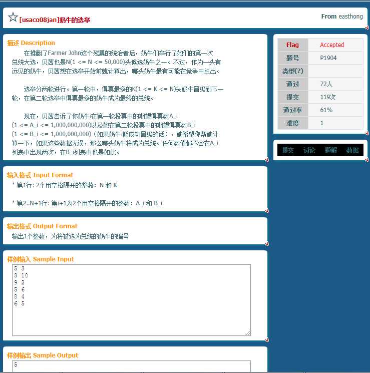即使类型为“其他”,但还是掩盖不了模拟的事实。那么直接sort Ai,再在前k个牛中找到Bi最高的就行。复杂度为N*logN+k